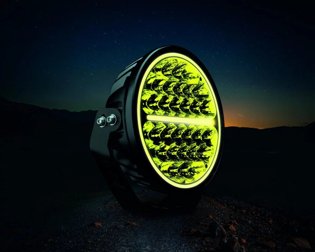 The 7” & 9” Bush Ranger models have a yellow lens with an E-approved, combo driving light pattern to produce an exceptionally effective light output in fog, snow, sleet or heavy rain. The bright yellow beam cuts through inclement weather and reduces headlight glare. The combination pattern delivers both long range and side-of-the-road illumination, allowing you to see objects sooner, improving road/trail safety. The second feature is a dual colour position light, which illuminates with your choice of output – a cool white or rich amber colour. This feature gives you the option of linking to daytime running lights, flashers or other functions and customizes the appearance of your vehicle.