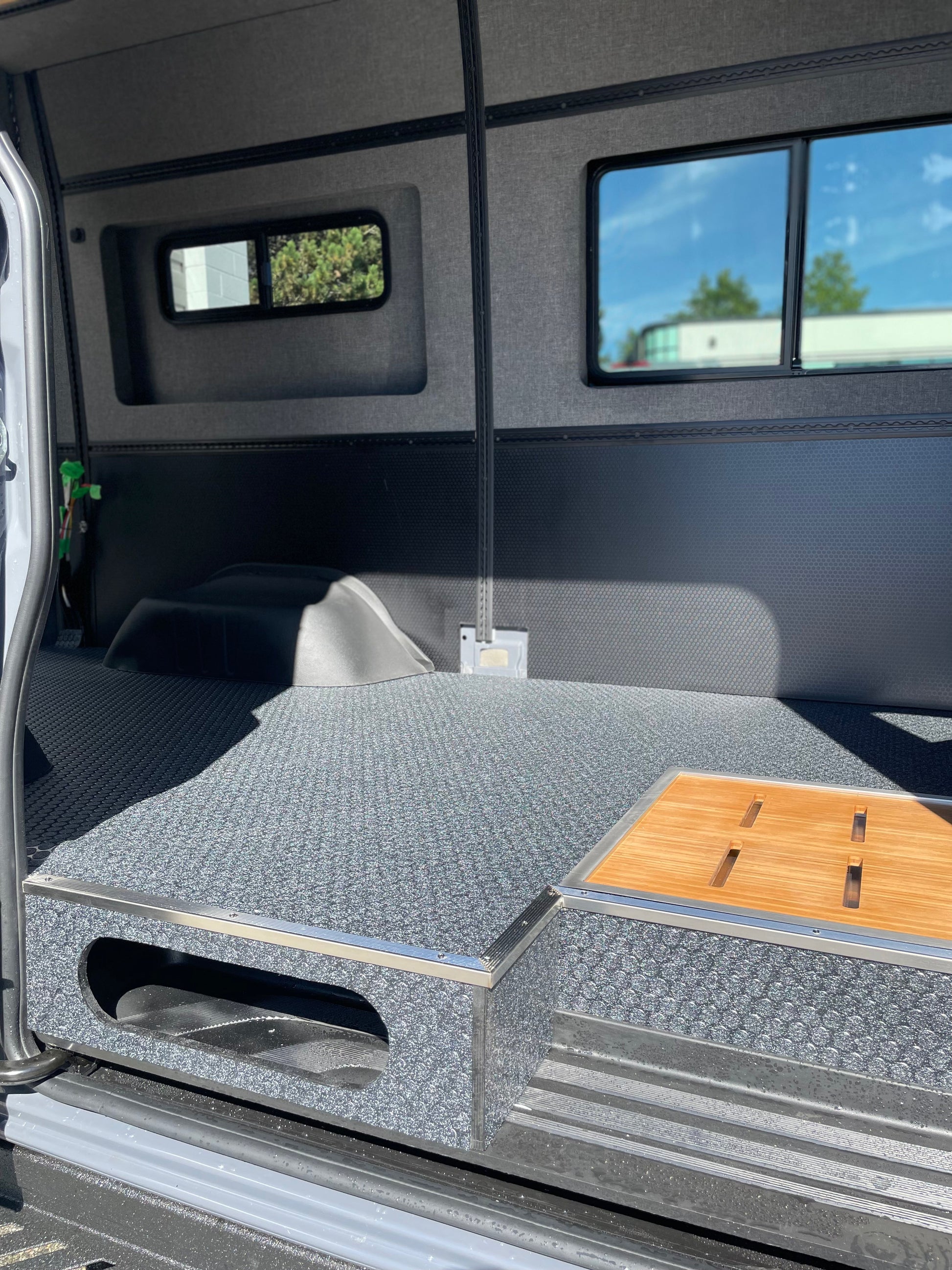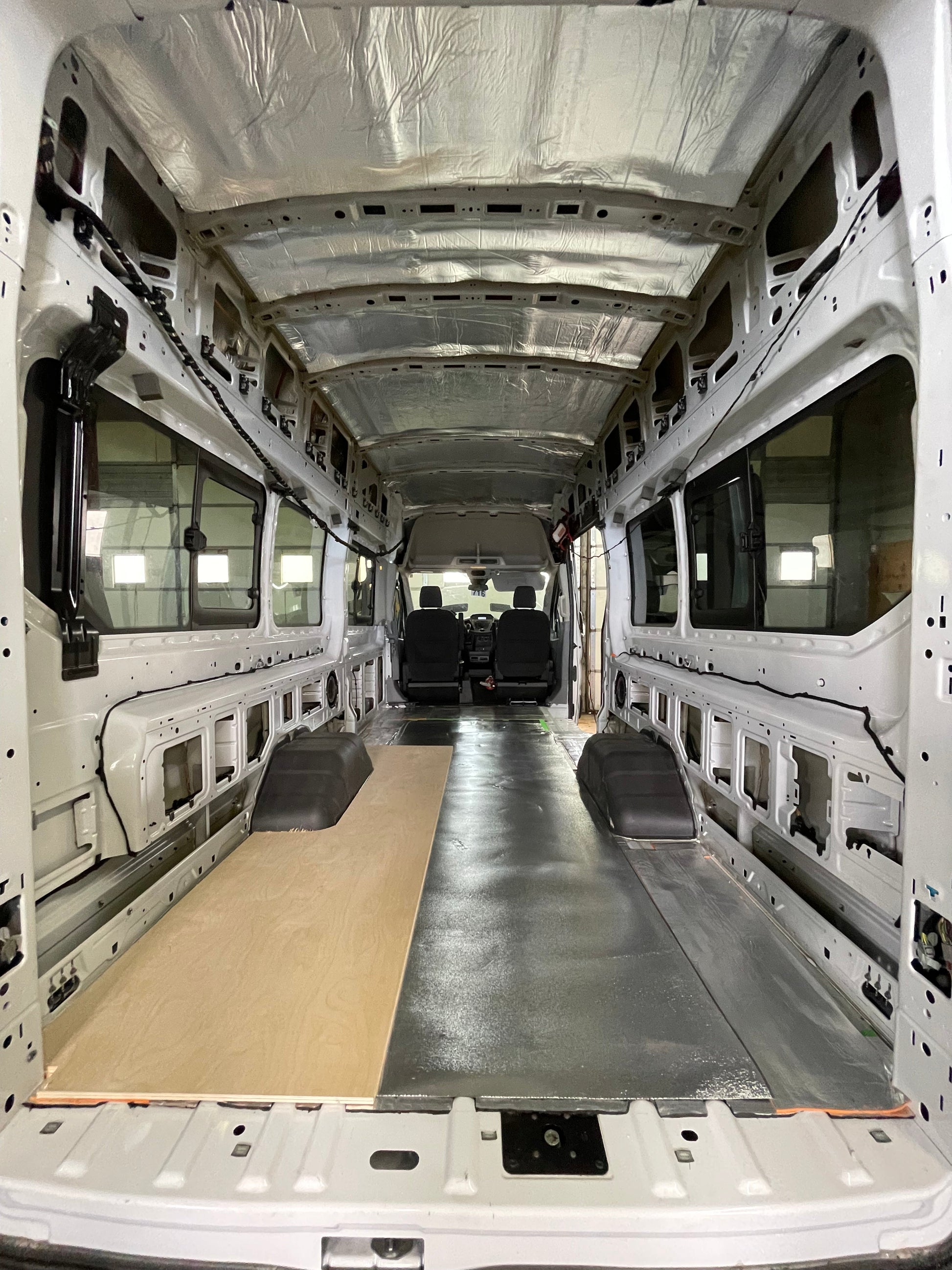 Price starts at $2435 for a short wheel base van, price includes floor insulation (Rigid board or Duck Liner), subfloor, and finished flooring (Lonseal flooring) with trim.